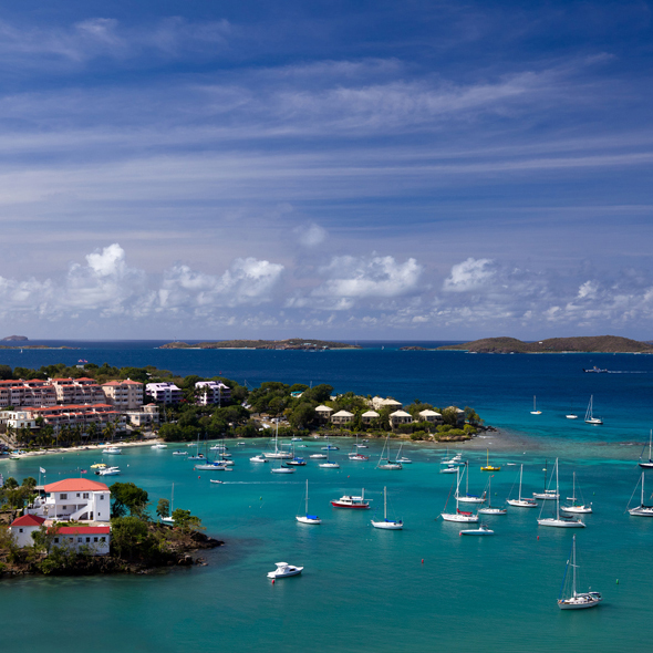 Being only 28 square miles in size and considered the smallest of the U.S. Virgin Islands and least developed, St. John is a serene natural nature reserve. The forested mountainous island has indented coastline rimmed with coves that protect the white sanded beaches. The heavily populated marine waters are wonder lands for snorkelers. More than half of the island and its coastal waters are protected by national parks.
