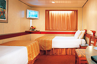 Interior staterooms are excellent vacation values. These spacious accommodations include most of the same generous amenities as their ocean-view neighbors. Some even feature an extra pull-down bed, which makes these staterooms ideal for families. All staterooms have carpeting, ample drawer and closet space, private facilities (shower, basin and toilet), telephone and color television showing first-run films. Our SuperLiners all feature staterooms above ocean level for a more comfortable cruise.