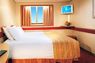 You'll be delighted with how large our stateroom windows are, giving you excellent views of the ocean and each destination. When sleeping late or planning an afternoon nap, the room-darkening draperies glide closed in seconds. Every Carnival guest is assured of spacious, comfortable accommodations. All staterooms have carpeting, ample drawer and closet space, private facilities (shower, basin and toilet), telephone and color television showing first-run films. Our SuperLiners all feature staterooms above ocean level for a more comfortable cruise.